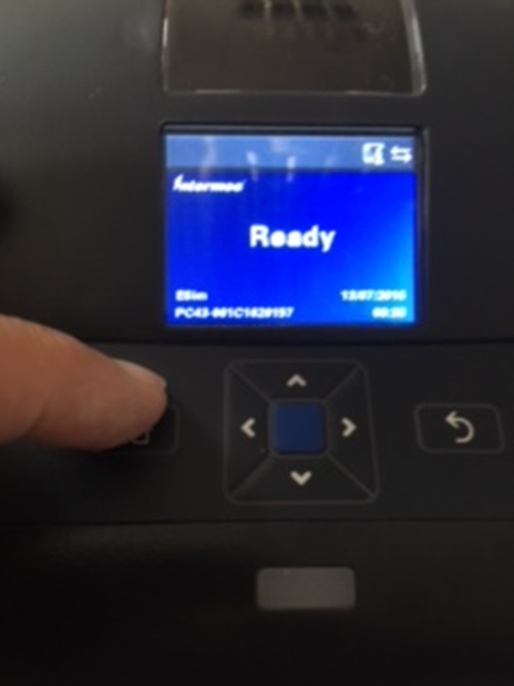 När det står ’Ready’ i displayen, stäng locket och tryck på knappen med ’huset’ till vänster: