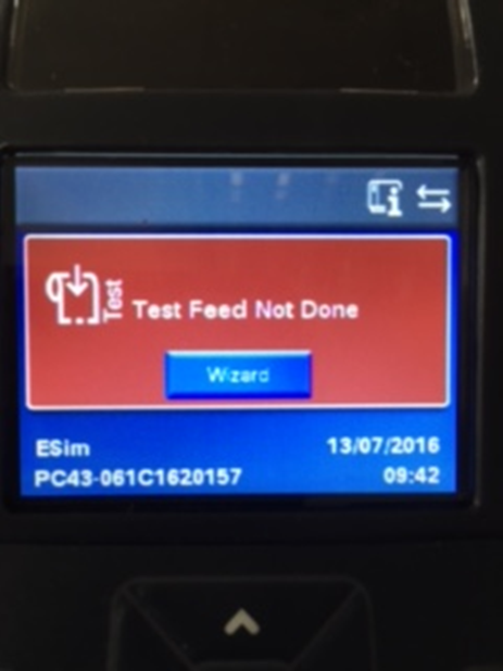 Starta eXcellence och gör en etikettutskrift från ’Inleveranser’. Vi första utskriften så visas följande i skrivarens display: